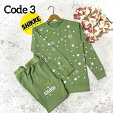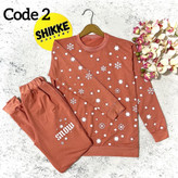 اندازه : بلوز: قد لباس ۶۵ قد آستین ۵۳ دور سینه در حالت عادی ۹۴ دور سینه در حالت کشسانی ۱۱۰ ____ شلوار: قد ۹۵ قد فاق ۳۰ دور کمر در حالت عادی ۵۲ دور کمر در حالت کشسانی ۱۰۰